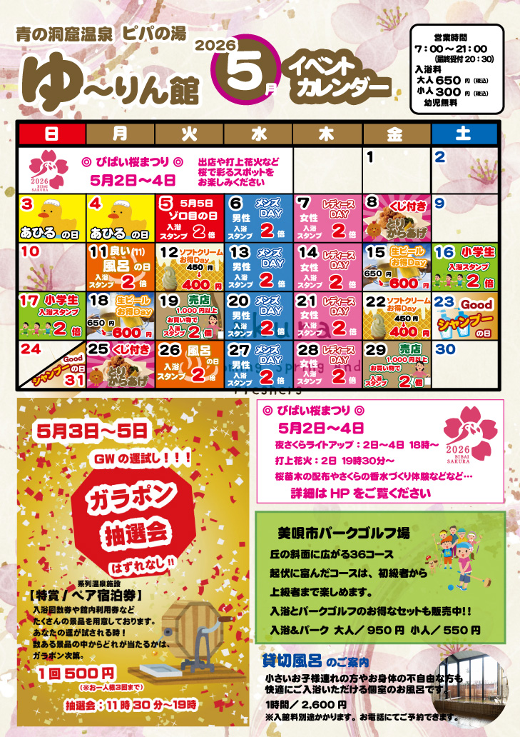 いつもピパの湯ゆ~りん館をご利用いただき、誠にありがとうございます。