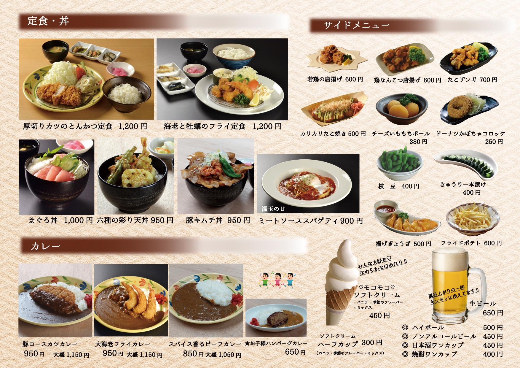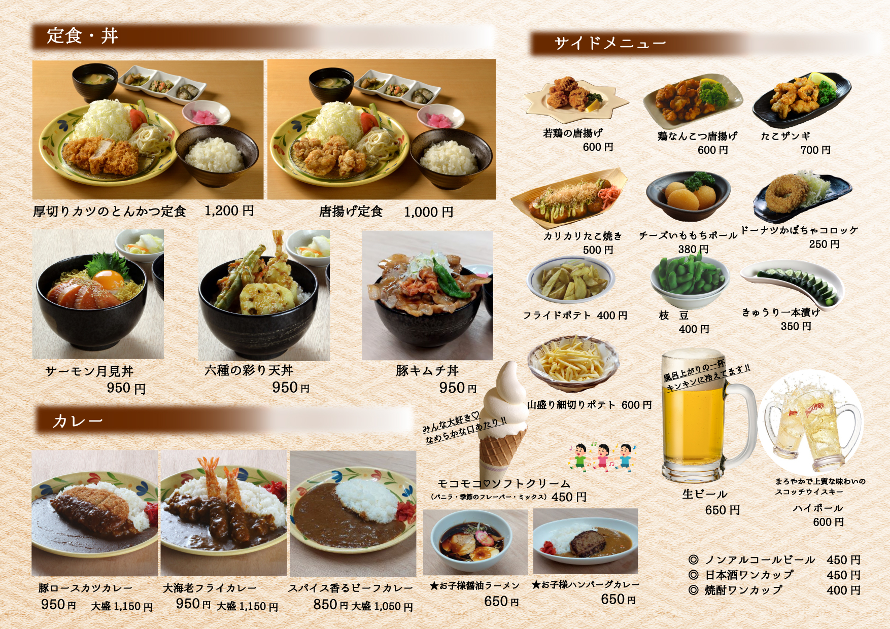定食から軽食・単品メニューなどお子様から大人の方までお召し上がり頂けるメニューをご用意しております。